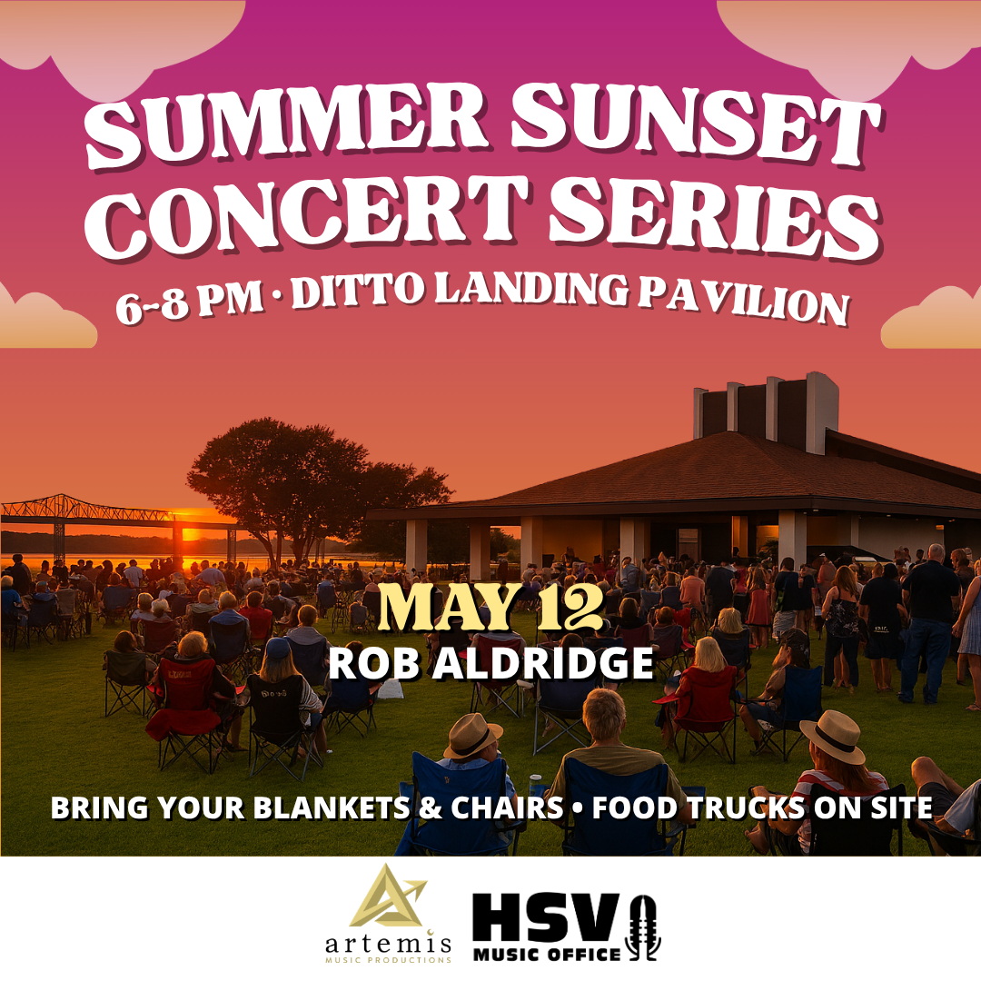 Ditto Landing, the Huntsville Music Office and Artemis Music Productions are excited to announce the Summer Sunset Concert Series every second Tuesday May through August 6-8PM. Come join us at the Ditto Landing Pavilion and enjoy local music along the Tennessee River. It’s open to the public with free admission.